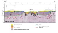The DDRS have geometric affinities with Seaward Dipping Reflector Sequences (SDRS) described by Symonds and others (1998). SDRS drilled on the Vøring margin are represented by alternating layers of lava flows and volcaniclastic sediments (Planke et al., 2000; Symonds et al., 1998). Based on the seismic character SDRS were interpreted on the Wallaby Saddle.