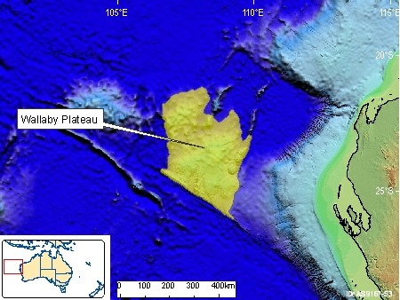 The Wallaby (Cuvier) Plateau is an expansive bathymetric high located 450km west of Carnarvon, Western Australia. It lies in water depths of 2200m to greater than 5000m and covers approximately 100 000km2. The Plateau comprises a large bathymetric high in the southeast and a smaller high, Quokka Rise, in the northwest. It is bordered to the north by the Cuvier Abyssal Plain and in the south by the Perth Abyssal Plain. The Wallaby Saddle to the east is a bathymetric low separating the Wallaby Plateau from the western Australian margin. Two prominent volcanic ridges extend from northern part of the plateau into the Cuvier Abyssal plain (Sonja and Sonne ridges,). The south-western parts of these ridges are embedded into the Wallaby Plateau and to the north-east they extend into the oceanic crust of the Cuvier abyssal plain. The Plateau largely lies within the Australia’s extended continental shelf, ratified under the United Nations Convention on the Law of the Sea in 2008 by the Commission on the Limits of the Continental Shelf (Symonds et al., 2009).