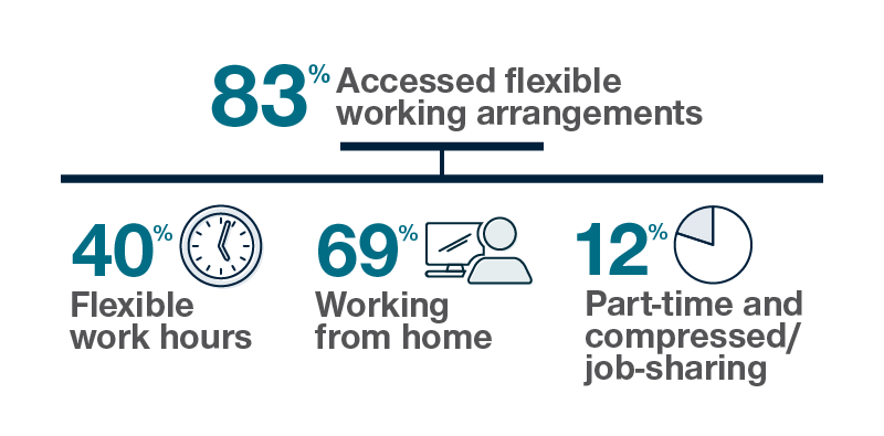- Genuine flexibility including part time work, flexible and compressed hours, working from home, job sharing and reasonable work adjustments.