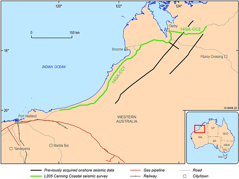 In May-June 2014 Geoscience Australia in collaboration with the Geological Survey of Western Australia acquired 705 km of deep crustal seismic and gravity data along two lines 14GA-CC1 (562km) and 14GA-CC2 (143km) between Port Hedland and Derby, WA. The main objectives of the project were to image the crustal architecture of the geology underlying the Canning Basin and its relationship to the boundaries between the crystalline hard rock areas of the North (Kimberley) and West Australian (Pilbara) cratons; establish the subsurface extent of the Canning Basin and the extent and nature of its sub-basins and troughs. The project was funded by Western Australian State Government's Royalties for Regions Exploration Incentive Scheme. Data were processed by a contractor on behalf of GA and GSWA. Selected data and images are available for download, raw SEGD data and a full processed data set including Pre-Stack Time Migration (PSTM), Pre-Stack Depth Migration (PSDM), Post-Stack Migration, Angle Stacks and CDP gathers in SEGY format are available on request from clientservices@ga.gov.au