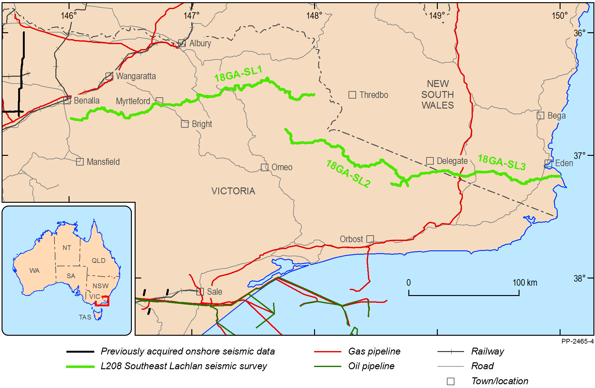 Six hundred and twenty nine km of deep crustal reflection data were collected for the Southeast Lachlan 2D seismic survey along three transects: 18GA-SL1 (302 km), 18GA-SL2 (163 km) and 18GA-SL3 (164 km) during March to April 2018. The purpose of the survey was to image the Tabberabbera, Omeo, Deddick, Kuark and Mallacoota Zones (west to east) of the Lachlan Orogen at a high angle to their structural grain, as a key reference section for the study of the Palaeozoic geology, geodynamic evolution and mineral potential of Victoria and New South Wales with implications for eastern Australia mineral exploration as well as natural hazard mapping. The Project is a collaboration between Geoscience Australia (GA), the Geological Survey of Victoria (GSV), the Geological Survey of New South Wales (GSNSW), and AuScope. Raw data are available on request from clientservices@ga.gov.au