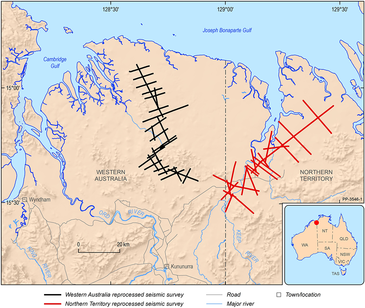 Geoscience Australia commissioned reprocessing of selected legacy 2D seismic data in the East Kimberley, onshore Bonaparte Basin (Figure 19.) as part of the Exploring for the Future (EFTF) program. Reprocessing of these data occurred between September 2017 and May 2018.