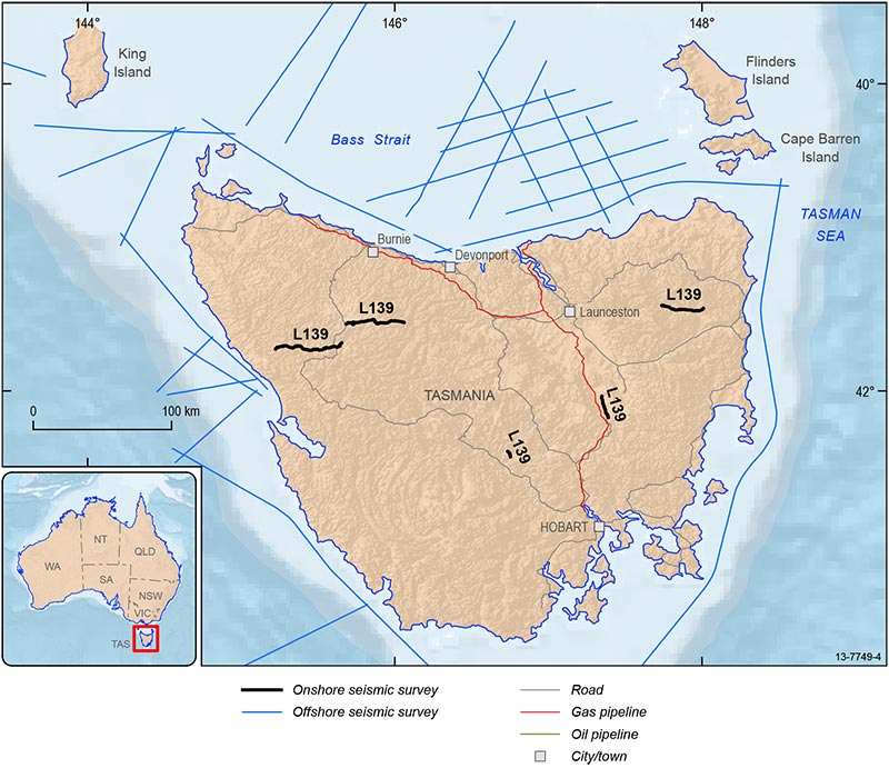 Leveraging off the timing and location of the Mount Isa-Georgetown-Charters Towers surveys, AuScope, which is a National Collaborative Research Infrastructure Scheme, funded 205 kilometres of seismic reflection line (see Figure 14). This line, 07GA-A1 was designed to image the Tasman Line and provide information on the structure and evolution of this part of the Australian continent.