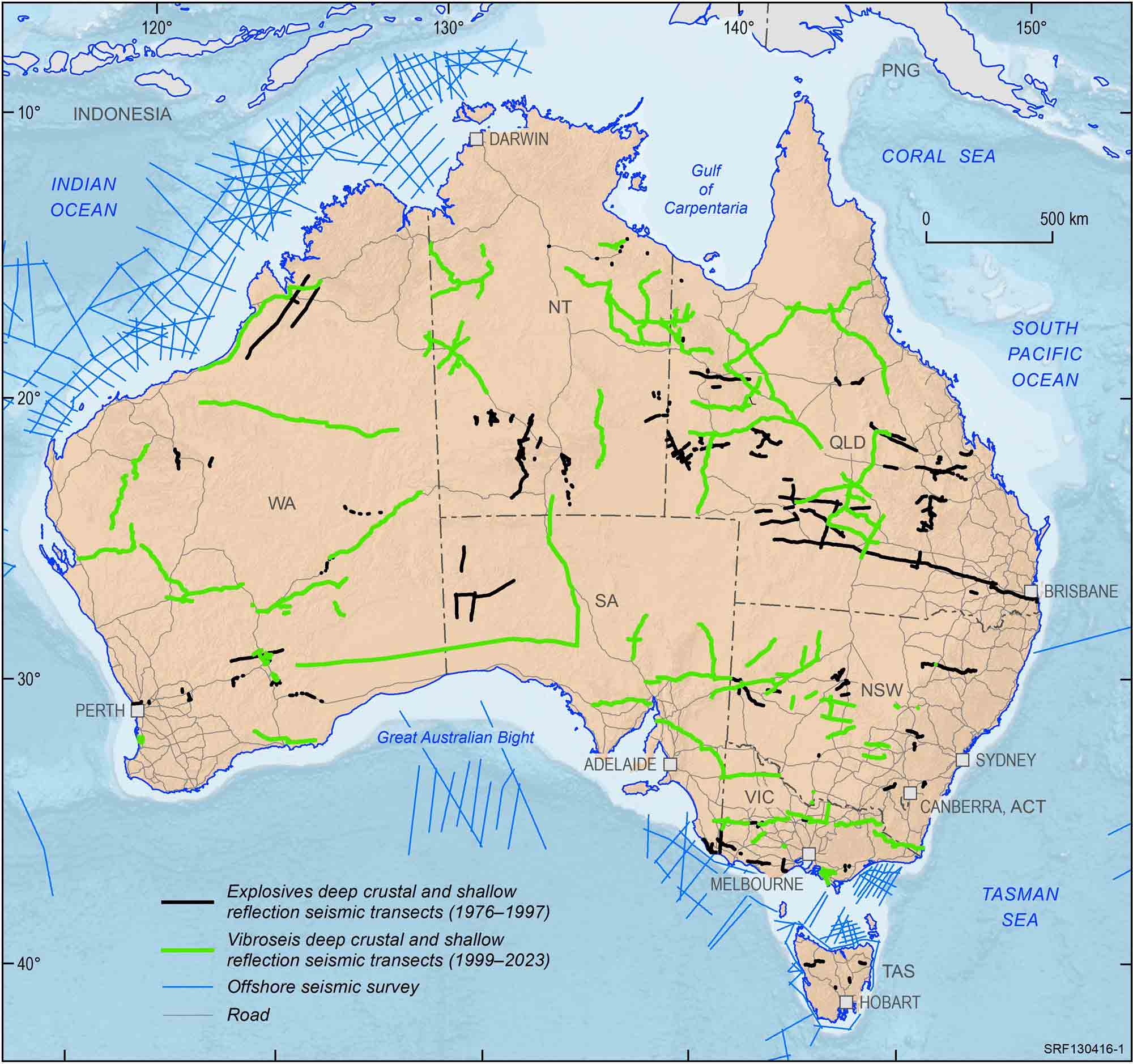 Geoscience Australia has more than 60 years experience in land seismic surveys and since 1980 has acquired in excess of 24000 kilometres of onshore deep crustal seismic reflection data and numerous 2D seismic refraction profiles.