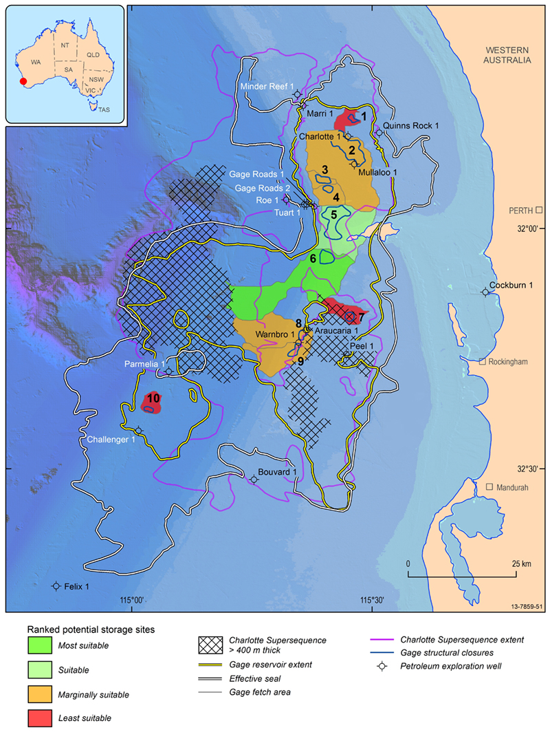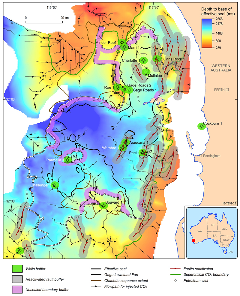 The study confirmed that the Gage LSF has excellent reservoir qualities and the overlying South Perth Shale seal has a good sealing capacity. However, the ability to use the available pore space in the Vlaming Sub-basin is controlled predominantly by the seal integrity.