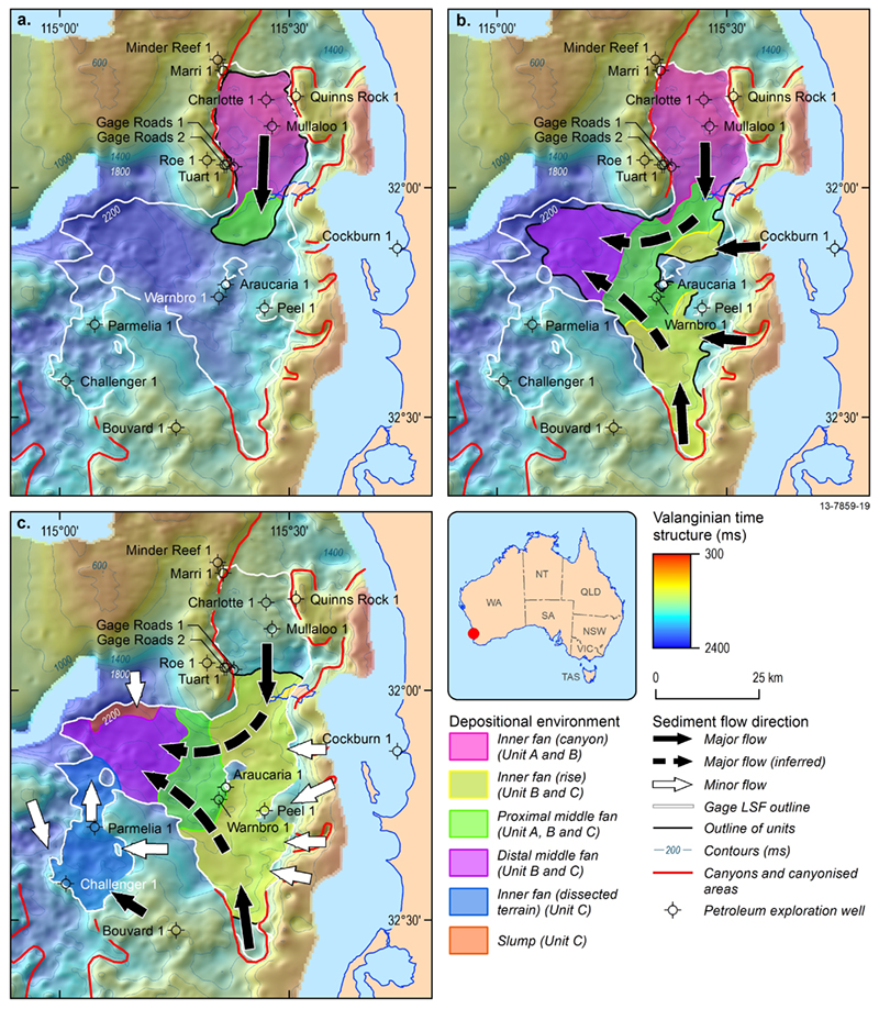 Understanding the variability of reservoir properties (e.g. porosity and permeability distribution) is essential for accurate estimation of the reservoir capacity. The study documented changes in depositional environments during deposition of the Gage Lowstand Fan (LSF). Understanding the evolution of the Gage LSF (Figure 1) based on seismic facies analysis, led to characterisation of the reservoir heterogeneity. Similarly, characteristics of the South Perth Shale seal were derived from paleogeographic reconstructions based on seismic facies mapping (Figure 2), which provided information on the distribution of the sealing lithologies.