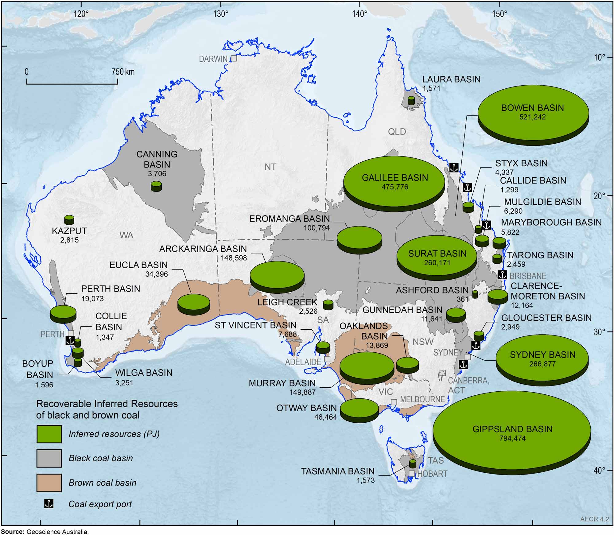 At 31 December 2022, Australia had substantial EDR (Figure 4.1) and Inferred Resources (Table 4.2, Figure 4.2) of black and brown coal (Table 4.1 and Table 4.2).