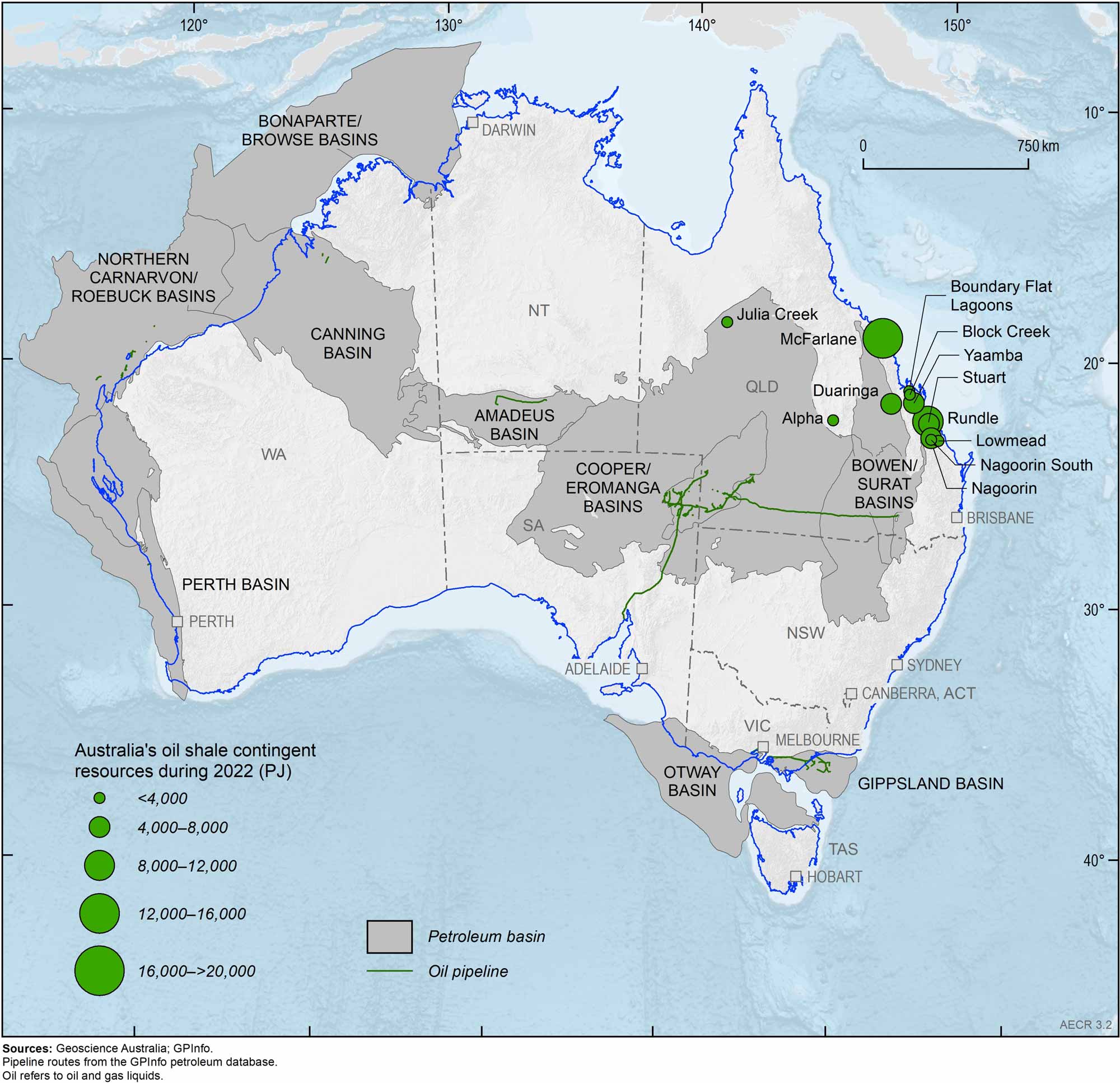 Figure 3.2. Australia’s oil shale contingent resources (2C) during 2022 (PJ). For physical units (MMbbl) refer to Table 3.5.