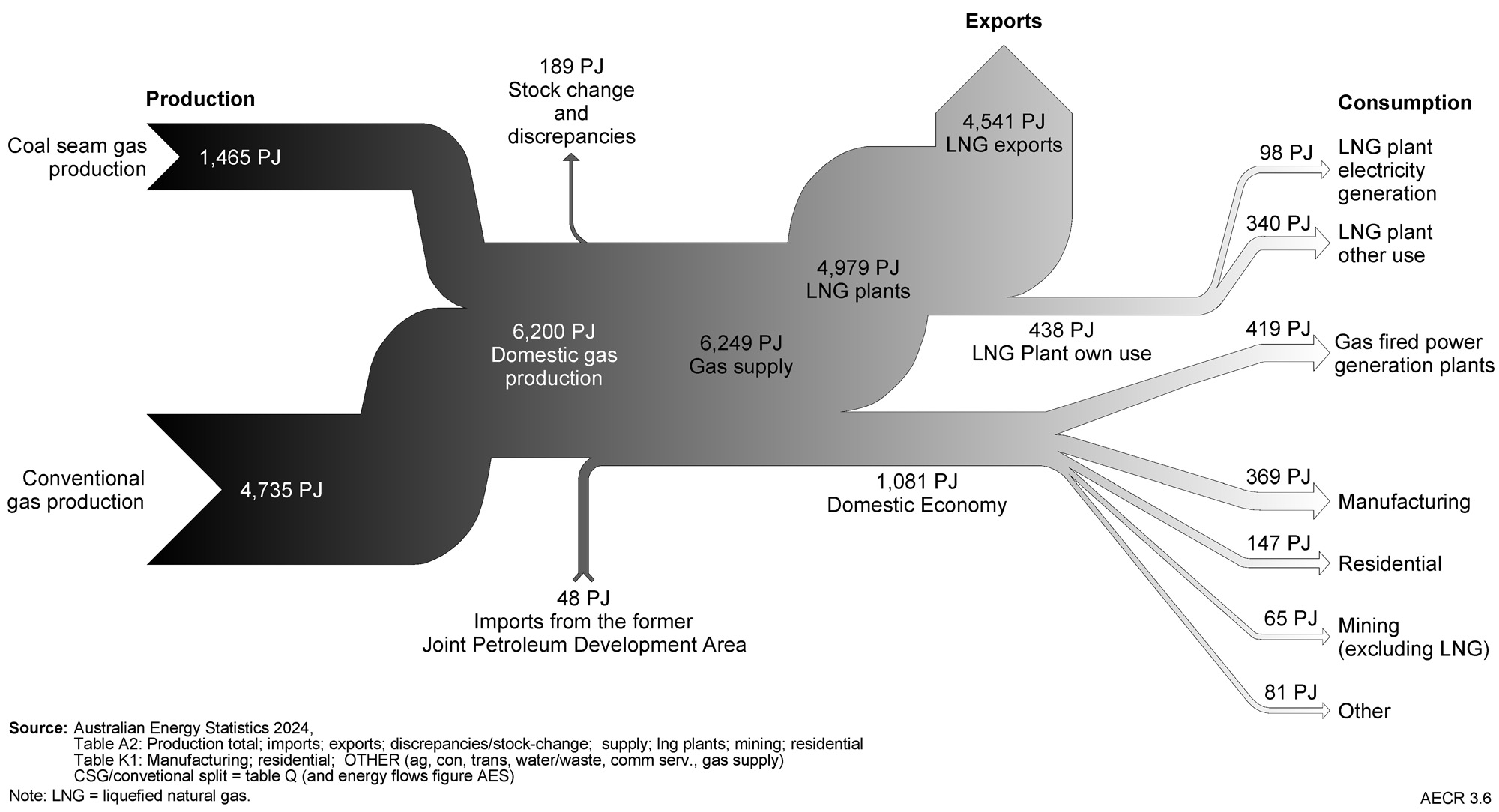 - Conventional gas and coal seam gas (CSG) remain Australia’s most important gas resources for energy generation and export. However, these resources are being depleted at a faster rate than they are being replaced by new discoveries (Figure 3.2).