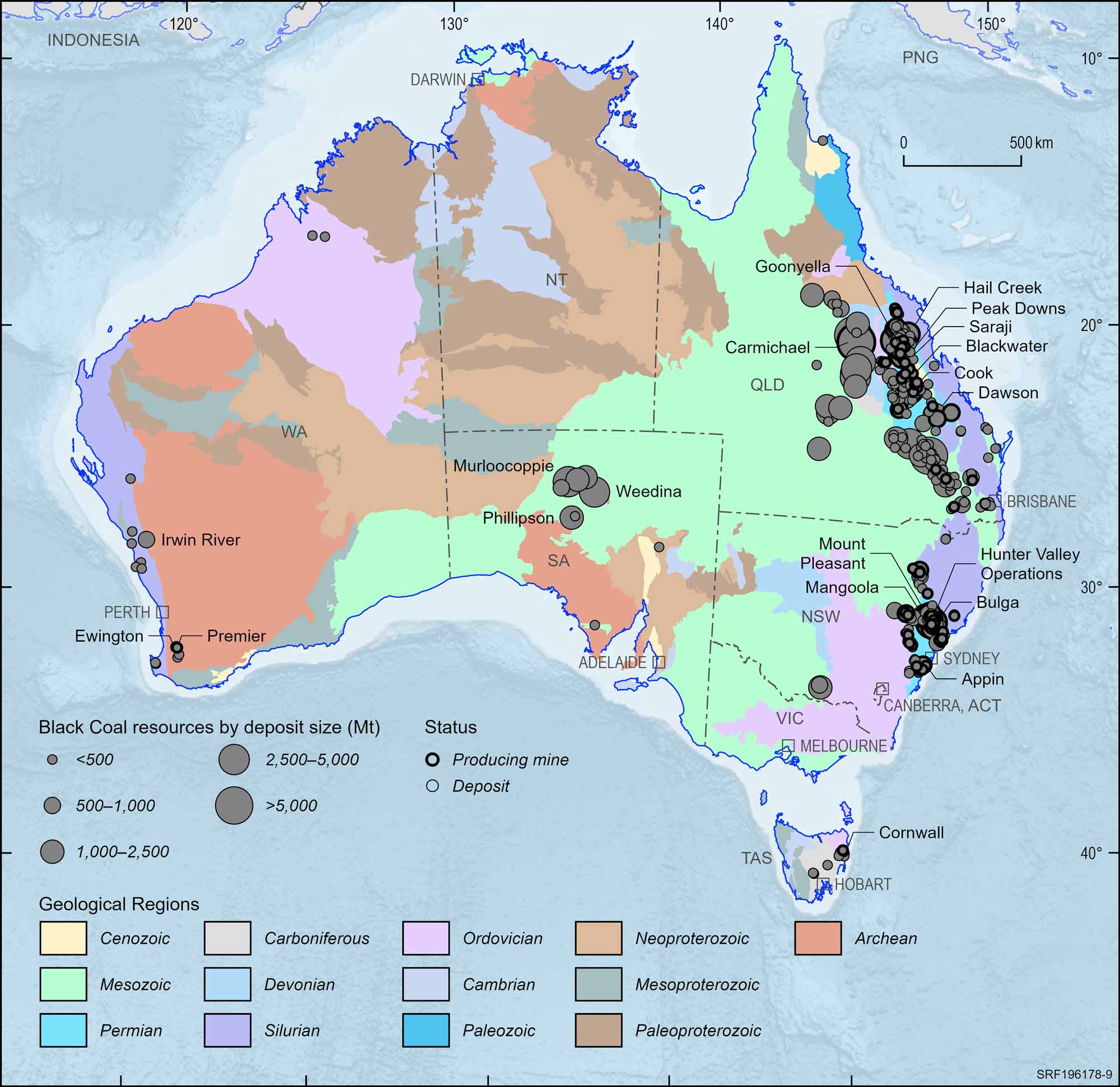 Resource figures are as at 31 December 2023. Operating mines and production are for calendar year 2023. Percentage increases and decreases and changes in the number of mines are in relation to 2022. World rankings are followed by percentage share in brackets. Export income is the sum of thermal and coking coal categories, sourced from Office of the Chief Economist, Resources and Energy Quarterly, September 2024.