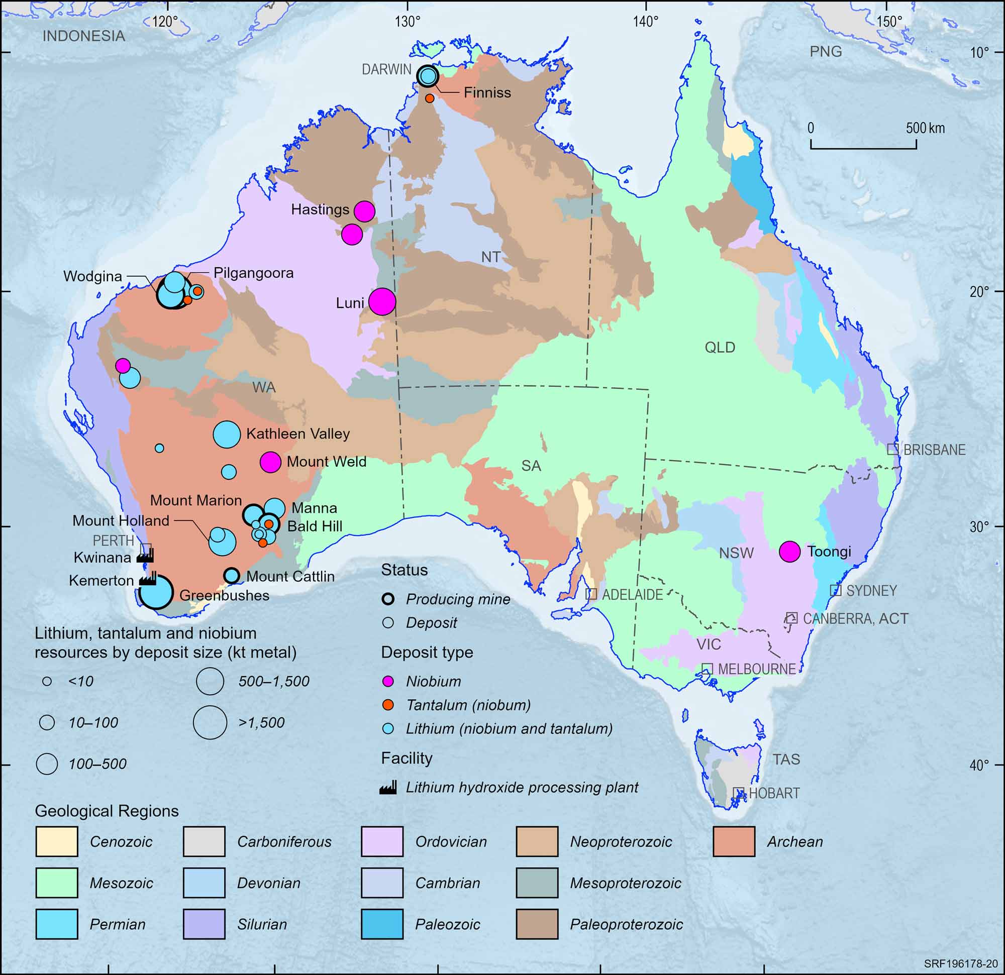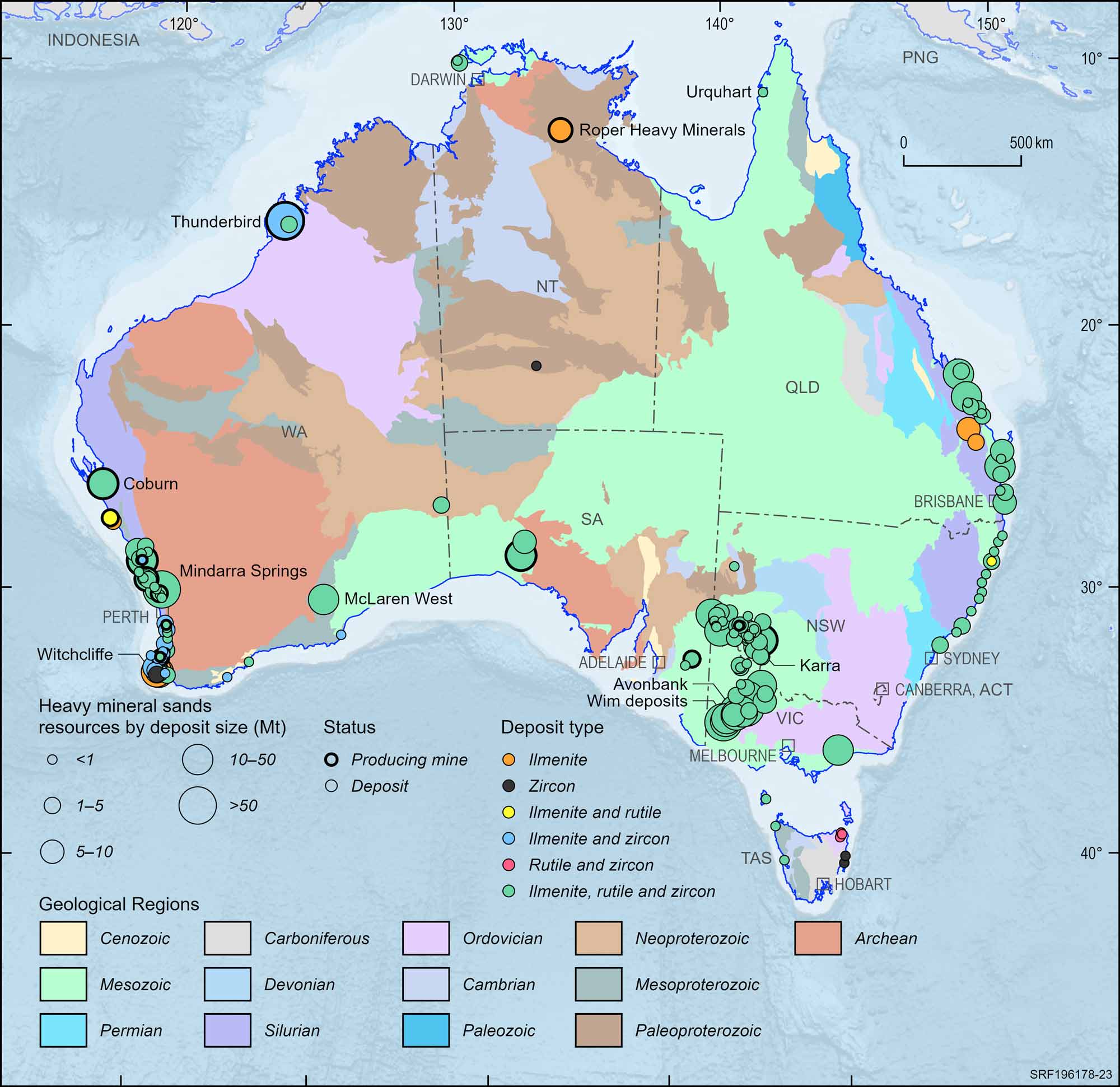 Resource figures are as at 31 December 2023. Operating mines and production are for calendar year 2023. Percentage increases and decreases and changes in the number of mines are in relation to 2022. World rankings are followed by percentage share in brackets. Export data is a minimum figure as it does not include data from the Northern Territory. Available export income is sourced from Department of Mines, Industry Regulation and Safety, Western Australian Government 2023 Major Commodities Resource Data File.