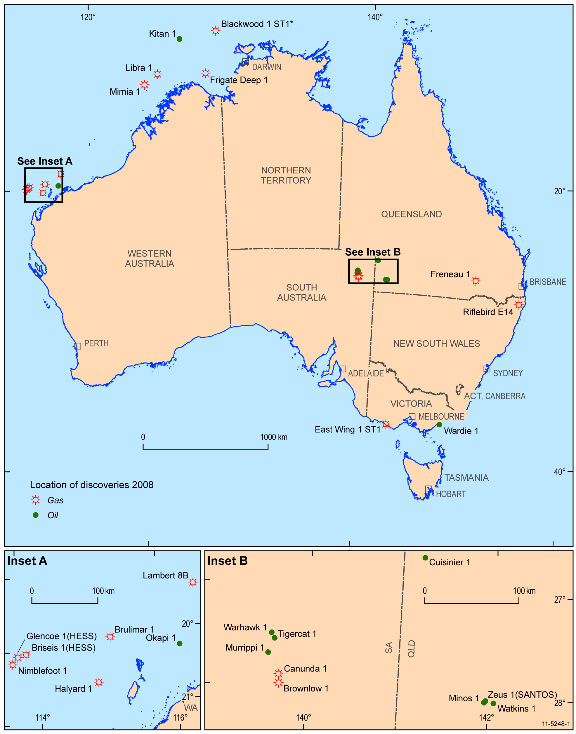 Discoveries Figure 1 - Locations of Discoveries, 2008 © Geoscience Australia