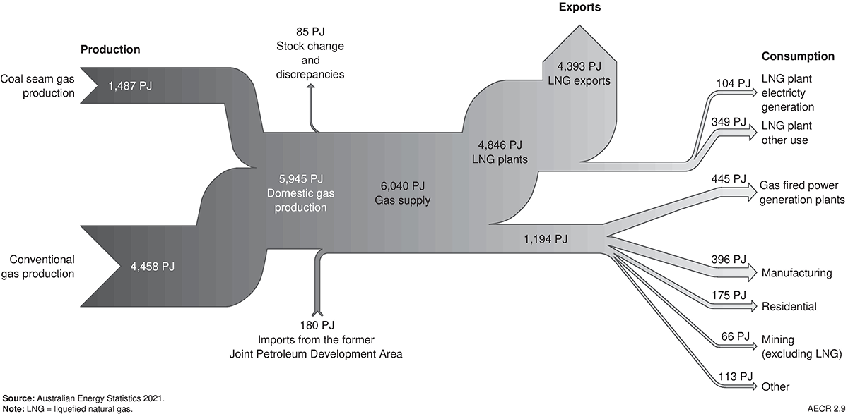 Conventional gas and coal seam gas remain Australia’s most important gas resources for production and trade.