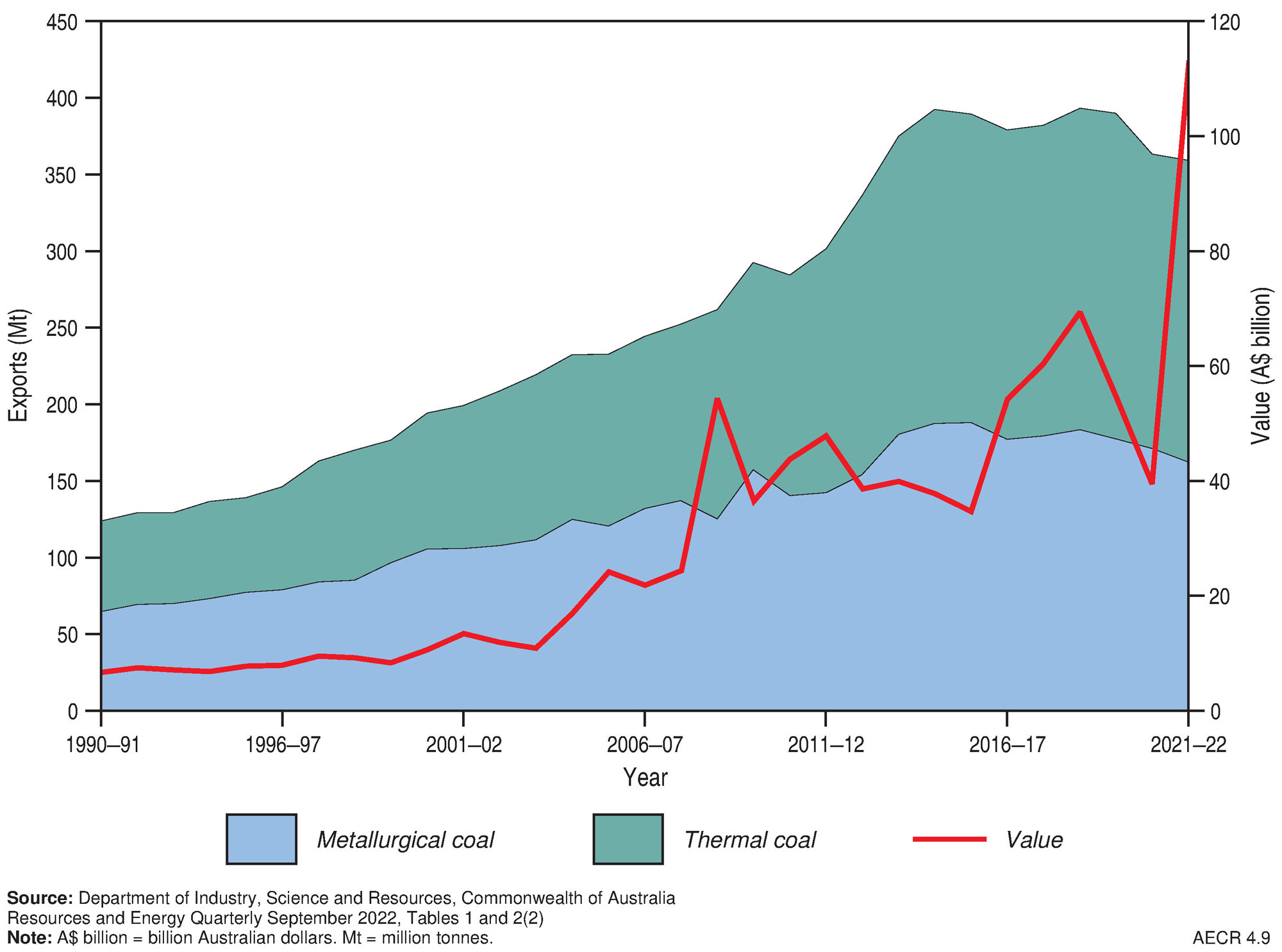 | Coal export value | A$b | 39.20 | na | na |