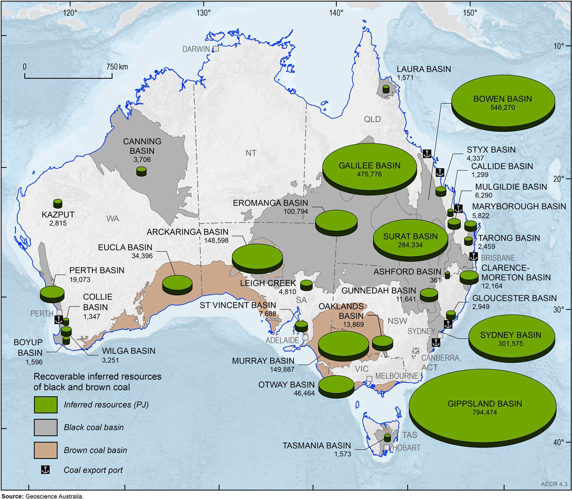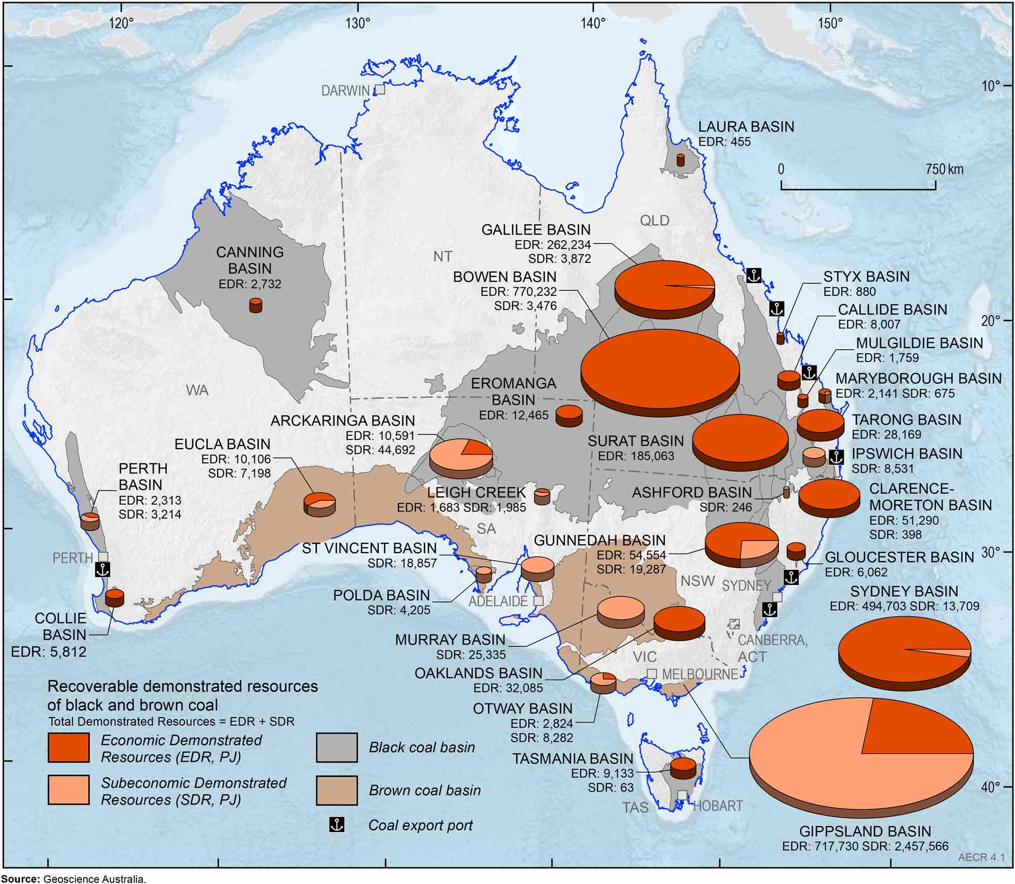 Australia’s coal resources are expressed as Economic Demonstrated Resources (EDR), Subeconomic Demonstrated Resources and Inferred Resources as defined below: