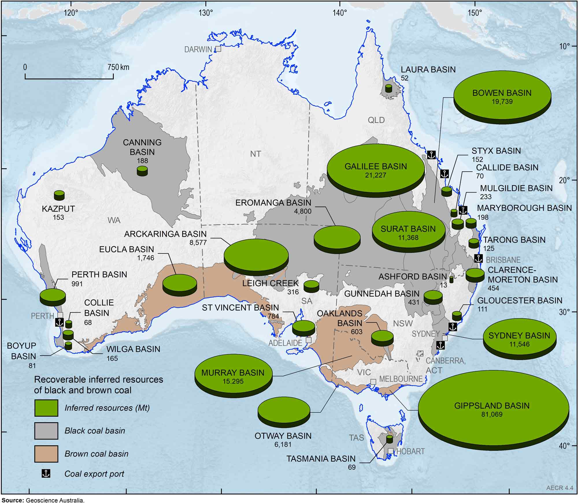 - Coal is Australia’s largest energy resource. At the end of 2021, Australia’s recoverable Economic Demonstrated Resources were 75,433 million tonnes (Mt) of black coal and 74,039 Mt of brown coal.