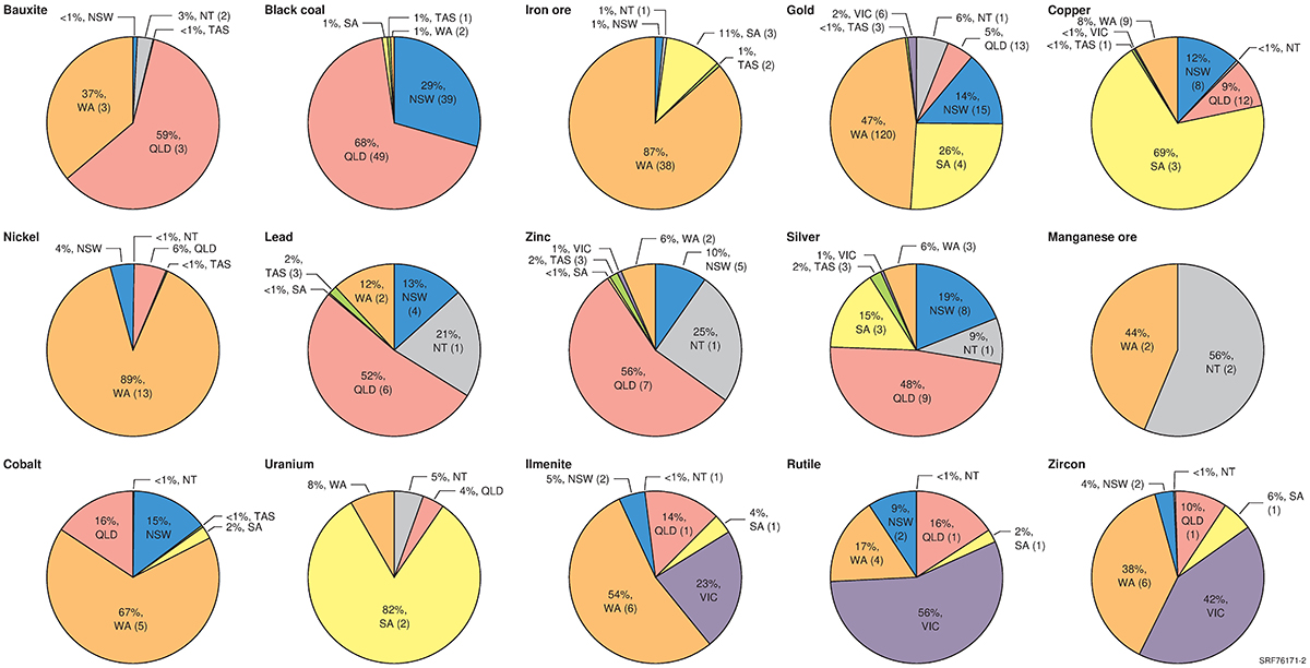 - Australian mine production from Resources and Energy Quarterly, September 2022 published by the Office of the Chief Economist, Department of Industry, Science and Resources unless otherwise stated. Production data often have a higher level of certainty than reserve and resource estimates and, thus, may be presented with more significant figures.
