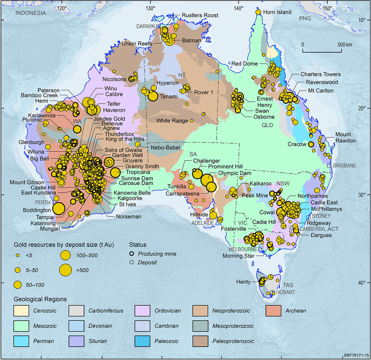 t Au – tonnes of gold content; $m – million dollars (Australian).