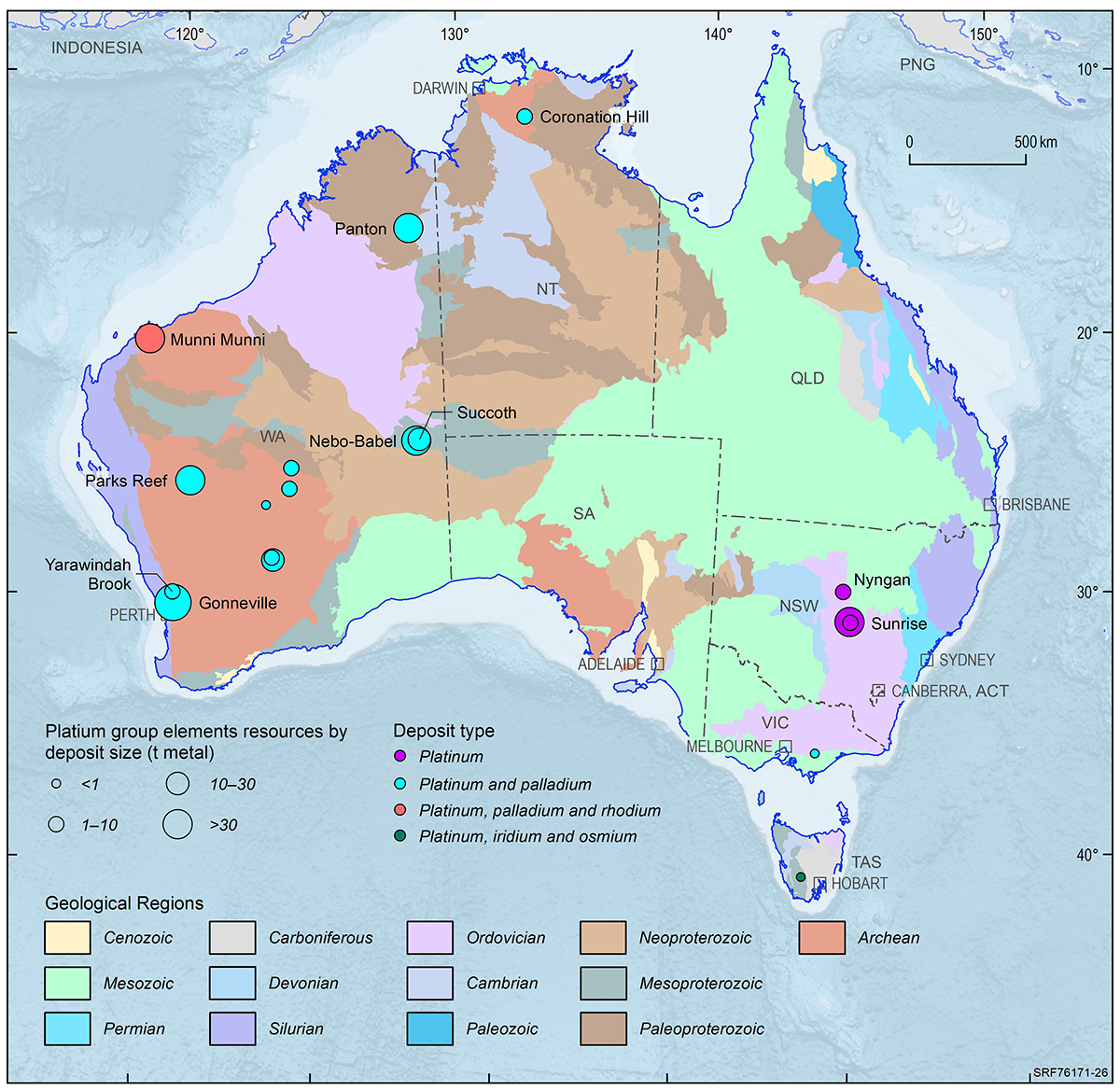 t metal –tonnes of metal content from platinum group elements (platinum, palladium, osmium, iridium, ruthenium, rhodium); n.a. – not available; $m – million dollars (Australian).