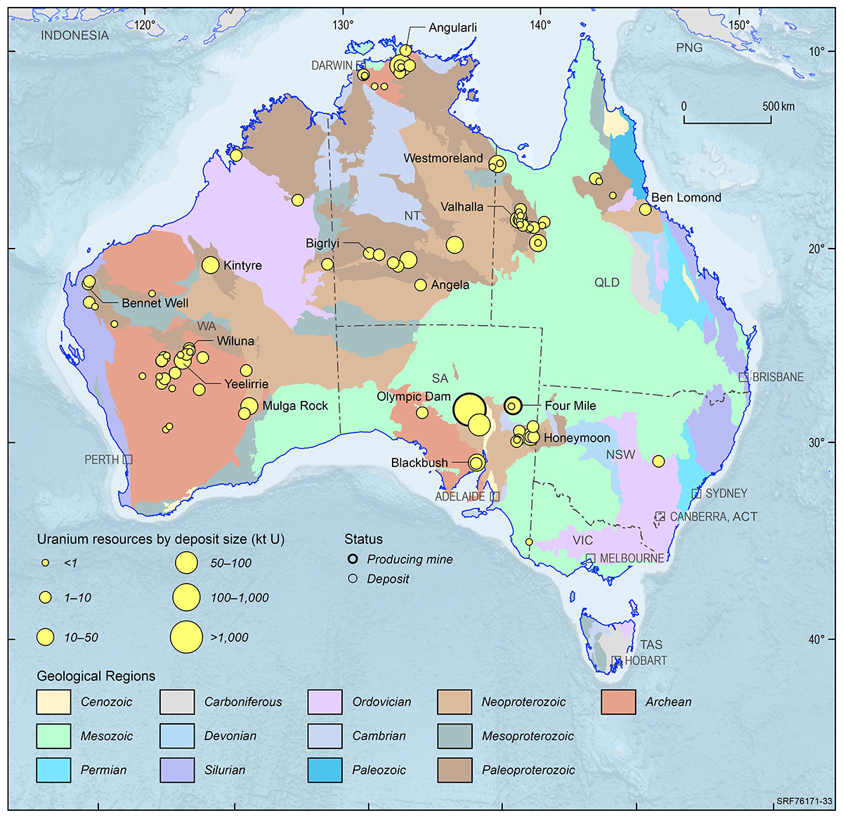 kt U – kilotonnes of uranium content; $m – million dollars (Australian).
