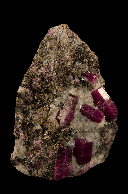 The remaining material also contains other heavy minerals such as magnetite and zircon. Magnets can be used to get rid of magnetic material and then zircons are removed by hand. The corundum is then visually assessed and graded according to size and colour.