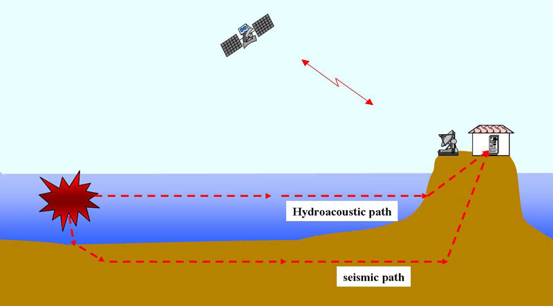 - converted to seismic energy at the ocean floor boundary close to the source. Data is transmitted via satellite link to the IDC in Vienna.