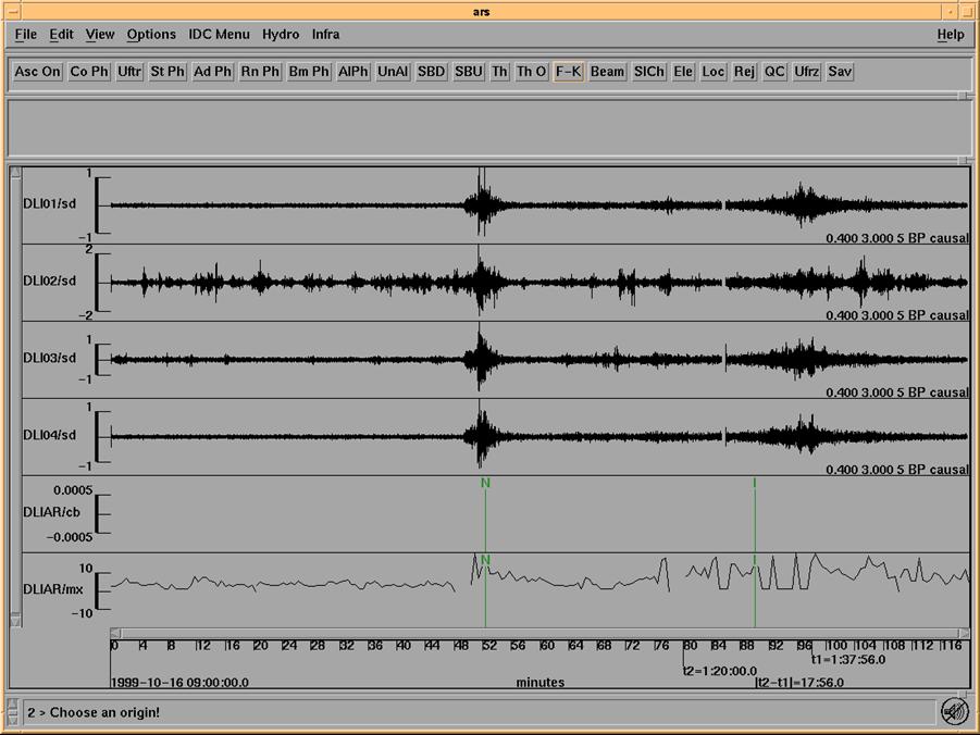The International Monitoring System (IMS) hydroacoustic network is designed to monitor nuclear explosions in the oceans and at low altitudes above the surface of the oceans. The network consists of 6 hydrophone stations and five ‘T-phase’ stations that have been strategically located (typically on small islands) to complete the coverage of ocean monitoring. Excellent coverage of the oceans is possible from so few stations as energy propagates very efficiently across the oceans by travelling in the sound fixing and ranging channel (SOFAR channel) where attenuation and absorption of energy is minimal. The hydrophone stations themselves are purposely suspended in the SOFAR channel to record very low signal levels. For example a few kilogram charge exploded in the SOFAR channel off (say) South Africa would be clearly recorded on the hydroacoustic station at Cape Leeuwin, southwest Western Australia.
