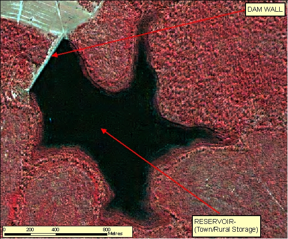 - Dam Walls can be constructed from both concrete, stone and earthen materials. Each will display a different signature on multispectral imagery.