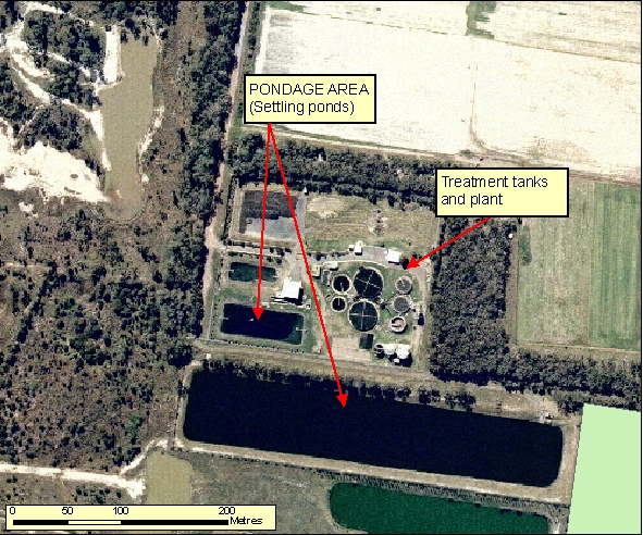 - Sewage Settling Ponds may be distinguished from other types of ponds by the presence of the treatment tanks and plant infrastructure.