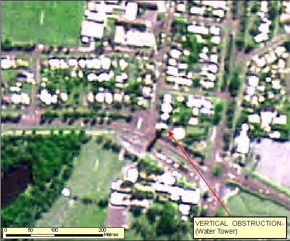 - Water Towers appear as circular elevated features. This is evident by the shadow signature.