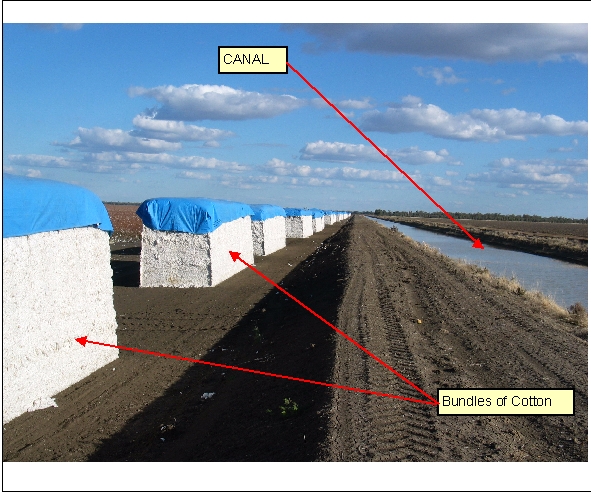 - The Cotton Gin facility has distinctive rectangular bundles of cotton during harvesting that are not topographic features and should not be captured.