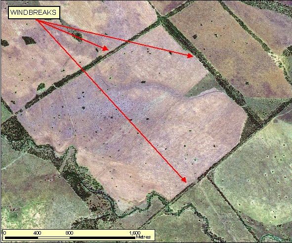- Windbreaks are located within paddocks. Winbreaks are not remnant vegetation along road corridors.