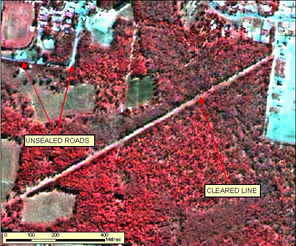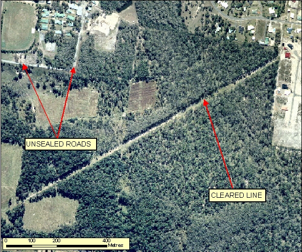 - In Figure 2.5.1.1a the Cleared Lines (created for Powerlines, pipelines, fire breaks, seismic monitoring, etc) have numerous attributes that differ to roads: