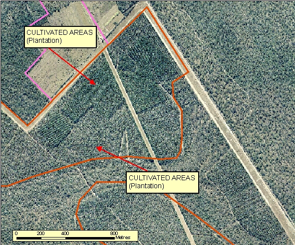 - Figure 2.5.4.1b shows both the newly planted rows, against the mature grown area, which is shown in dark green.