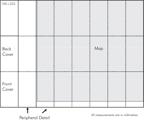 The table below details the trimmed paper sizes for 1:250 000 and 1:100 000 maps. All paper sizes fold down to the same size.