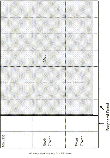 The following diagrams show the relationship of trimmed paper size to the number of folds and map extents and indicate the layout of information in the margin. The relationship to the detailed layout guides in Appendix B is also given together with any modifications due to trimmed paper size. The maximum printing area will extend 40 mm above the trim line at the top, 30 mm out from the trim line at the sides and 10 mm at the bottom. All registration marks, colour control and map bleed will fall within the maximum printing area.