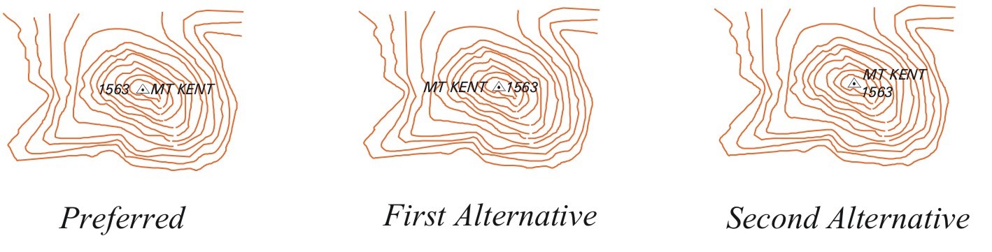 | Wherever possible letter spacing should be used for Medium and Large Mountain Ranges to enable large or irregularly shaped areas to be labelled in a balanced fashion. This requirement may not be applicable in all cases due to varying density of map detail and other aesthetic considerations. | |||