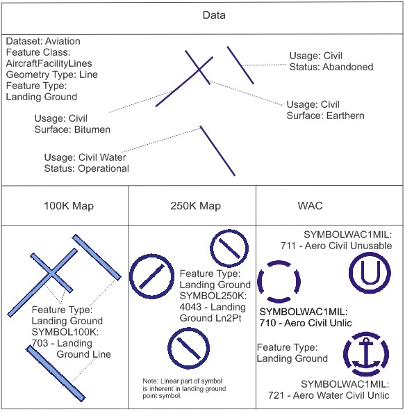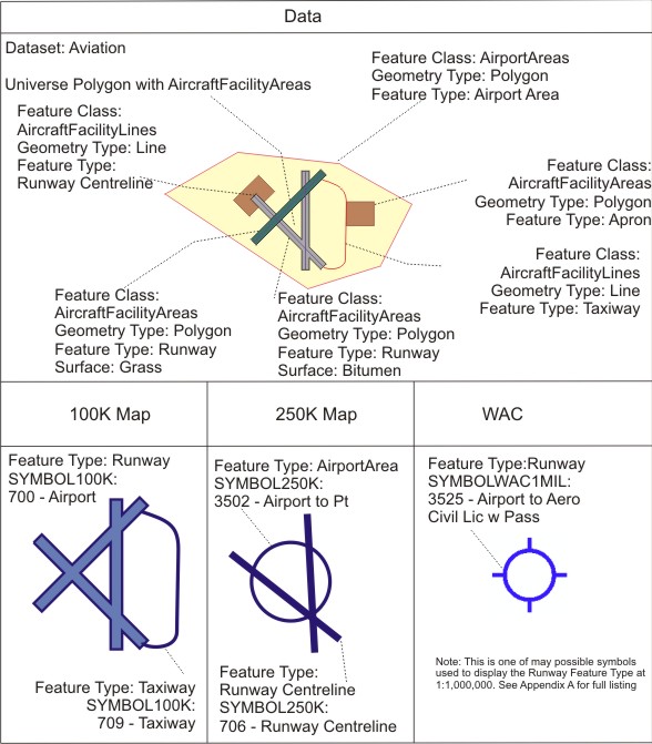 - the cartographic principles which must be taken into account when capturing or maintaining data to allow easy production of the main map output of the databases (e.g. 1:250 000 and 1:100 000 National Topographic Map Series).