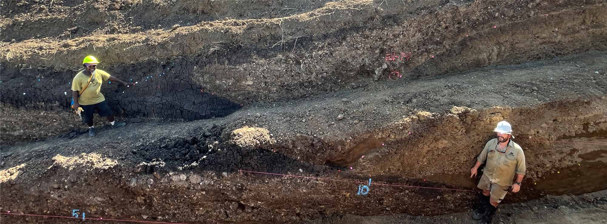 Leo Jonda (L) and Dan Clark (R) during trenching activities near Lae, 2025. Image: Geoscience Australia