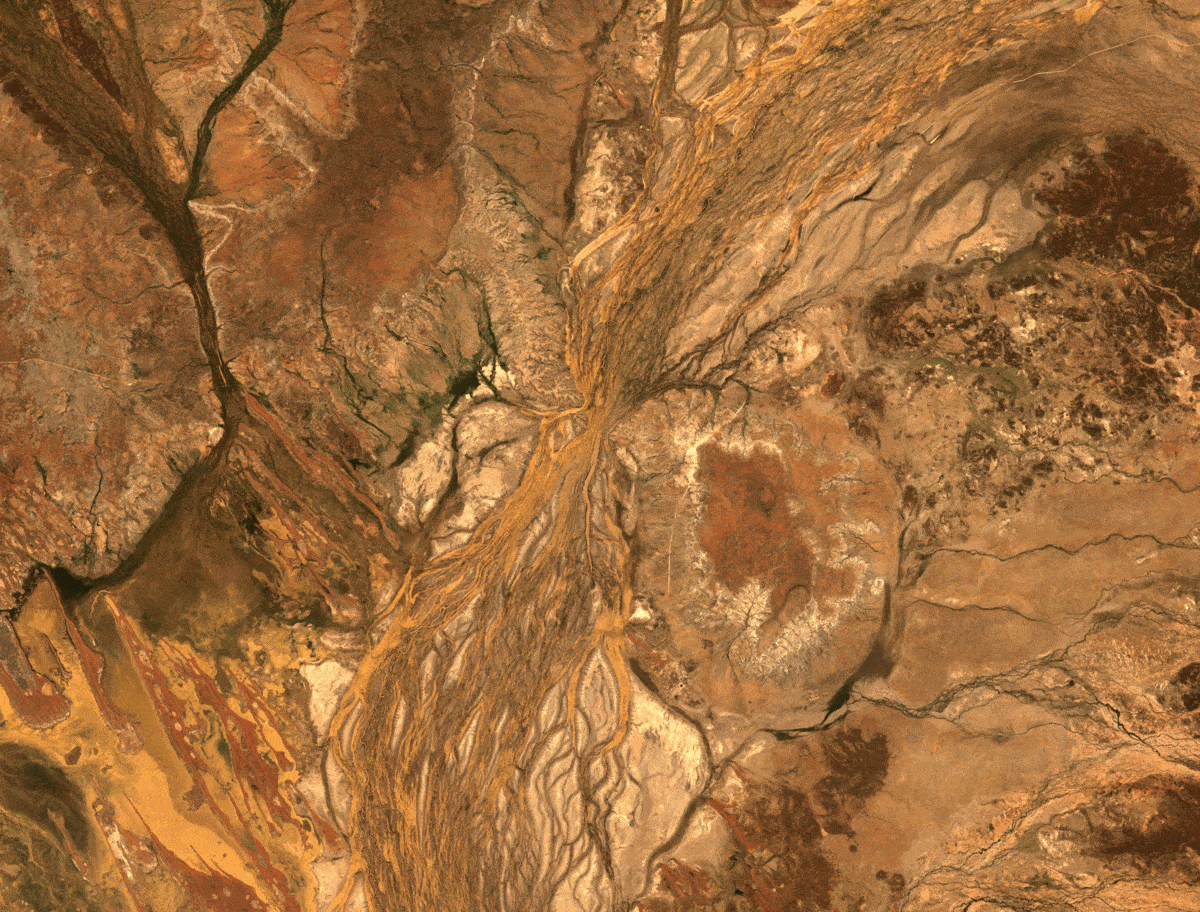 “In this True Colour image, you will notice how the brown river has a shine that makes it stand out from the dry ground around it.