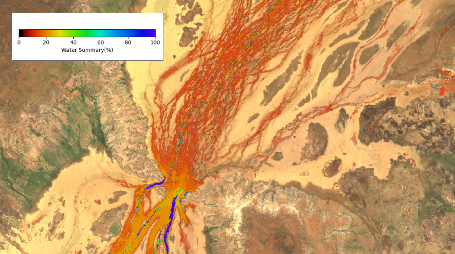 How dry the riverbeds were previously can be seen with Digital Earth Australia’s (DEA) Analysis Ready Data products, such as DEA Water Observations and DEA Surface Reflectance.