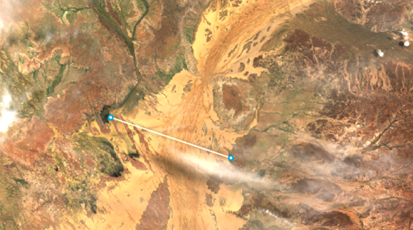 In this image we see the breadth of the flood waters, with the line shown on the image measuring 25.2km across. Take a look through other images in the gallery and see the inland sea flowing through the Diamantina Shire over the past three months.