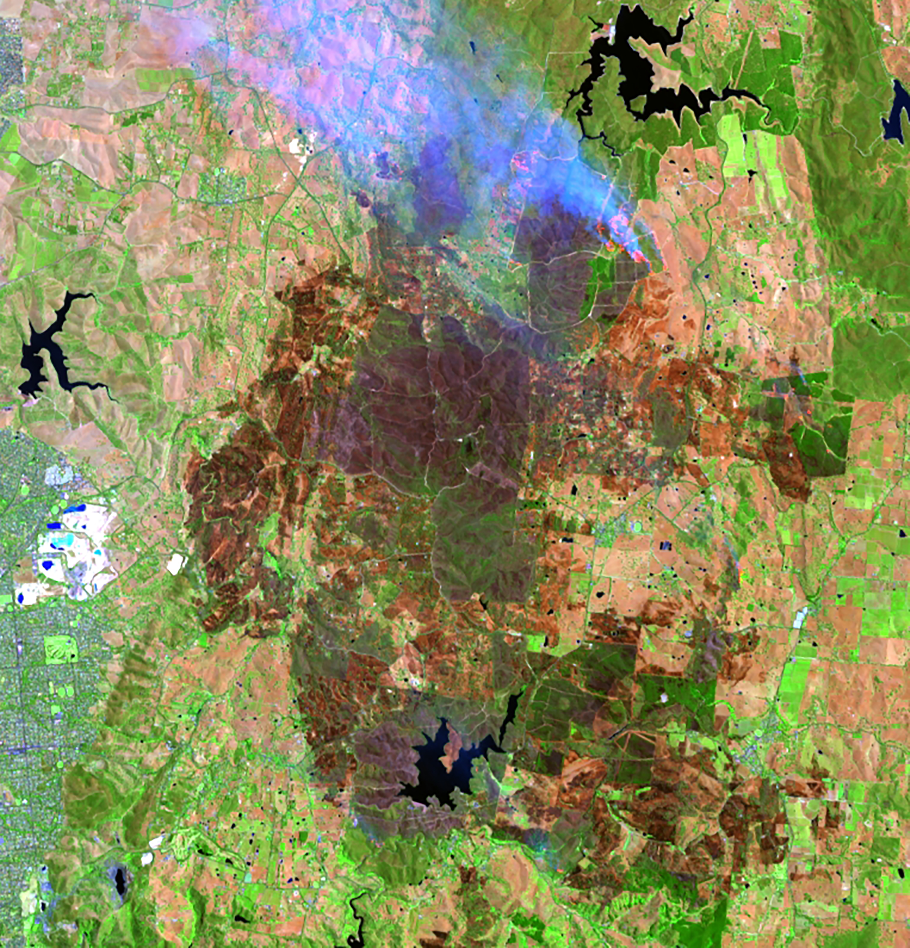Adelaide Hills fires image captured by Landsat 8 satellite