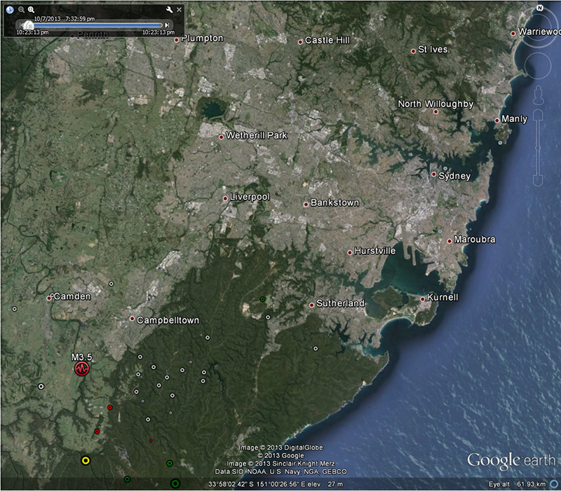 The epicentre of the quake was located 50 kilometers south-west of Sydney, New South Wales, approximately half way between Campbelltown and Appin.