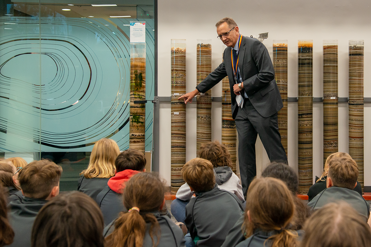 While the 32 Year 6 students were exploring the education centre, Geoscience Australia’s Chief Executive Officer Dr James Johnson came to welcome them during this significant visit.