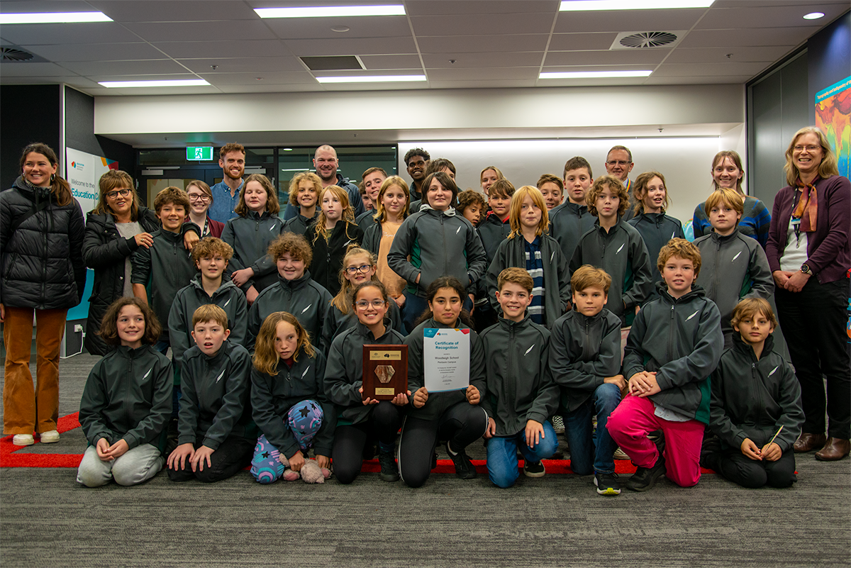 Hitting this milestone was a group of year 6 students from Woodleigh Primary School from Moorooduc Victoria, who were visiting Geoscience Australia for the first time.