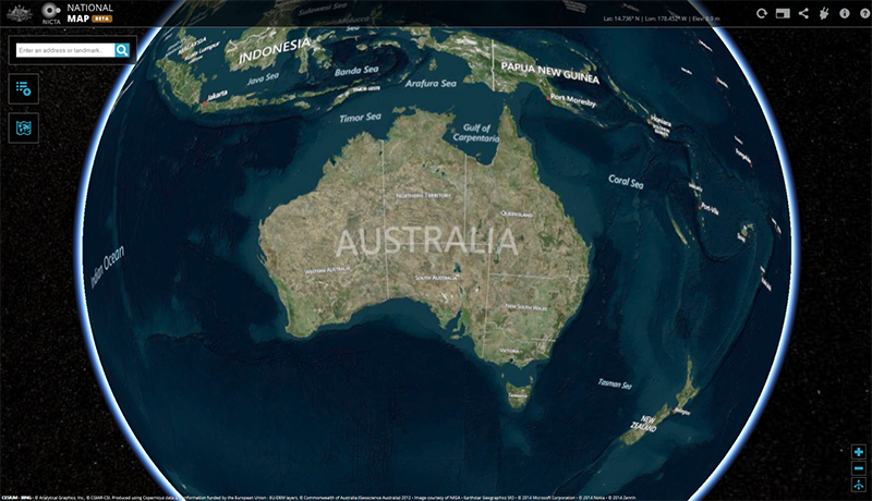 Geoscience Australia is also working in collaboration with the Department of Communications and NICTA on the National Map project, a web mapping application that provides public and government users with intuitive access to a wide range of geospatial data from many Australian government agencies, from the federal level to the local level.