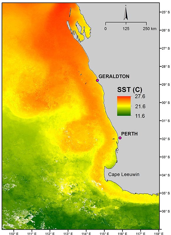 Dr Zhi Huang, will present details of research on the long-term patterns of variation in ocean currents, including changes in the Leeuwin Current along the coast of Western Australia. This work builds upon 10 years of existing satellite data to help identify changes in the Leeuwin Current. These variations in sea surface temperatures have been found to influence the distribution and abundance of fish and other marine biota both on the shelf and adjacent coast.