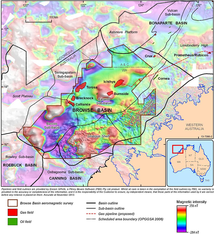 Recognising the benefits of airborne magnetic data to regional basin studies, an airborne magnetic survey was conducted during 2013 in the Browse Basin off the northwest coast of Western Australia. The survey was conducted as part of the National CO2 Infrastructure Plan that aims to acquire, interpret and integrate new and existing pre-competitive data to assess the suitability of various basins for the geological storage of carbon dioxide (CO2). The new data, recently released online, will also be merged with existing data to produce updated national magnetic anomaly maps that will help future resource exploration.