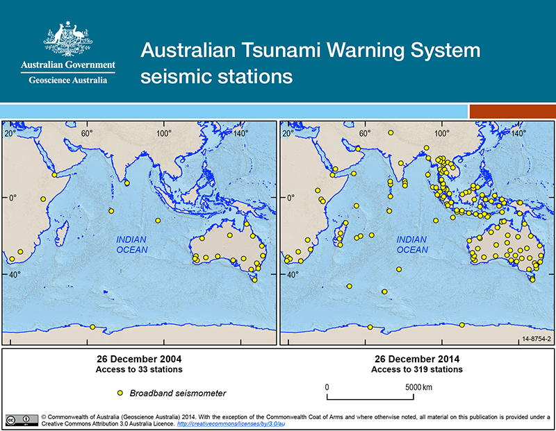 There were no mitigation and response strategies in place at the community level; Geoscience Australia had 33 seismic stations (developed for domestic earthquake monitoring and alert services); and the Bureau of Meteorology had 26 sea level monitoring stations, but with very limited capability to access the information in real-time. There was no tsunami forecasting capability.